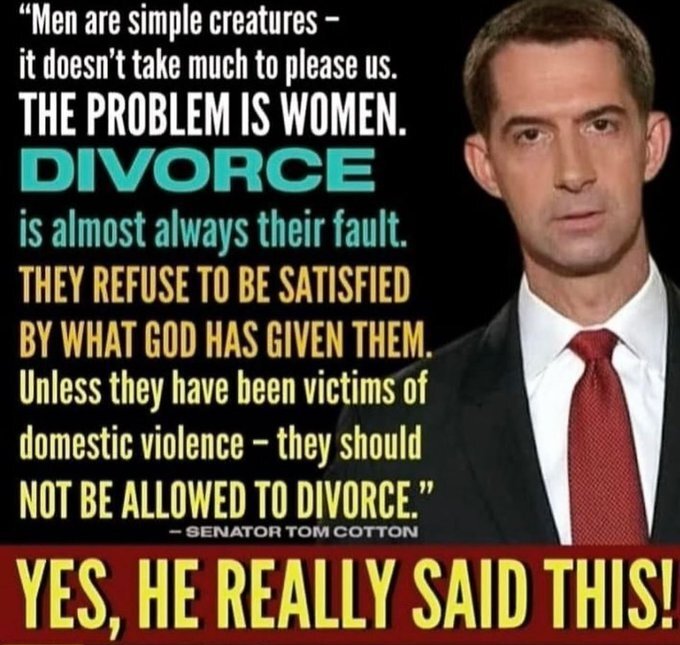 June 18, 20241 yr 51 minutes ago, Toastrel said: Tom Cotton And they still can't figure out why they can't get suburban moms to vote for them.