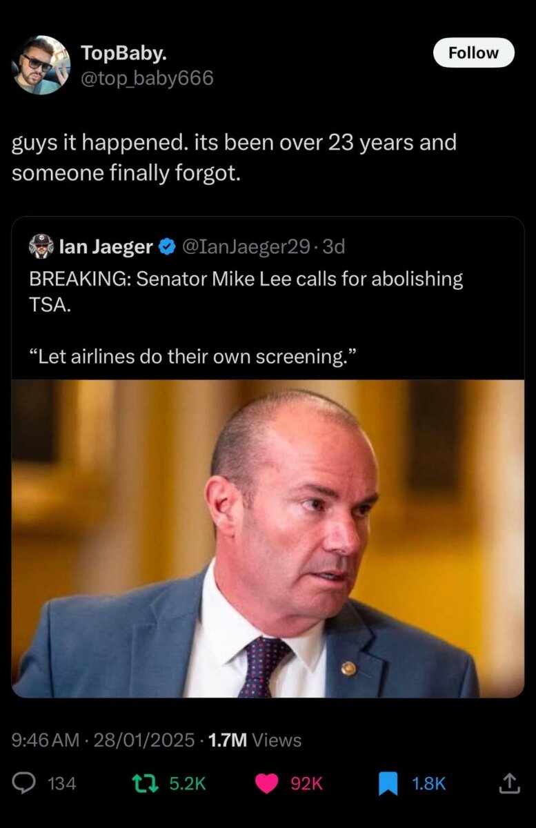 January 30Jan 30 12 minutes ago, mr_hunt said: Eh I mean IIRC the issue with the box cutters wasn’t that security didn’t notice them but that they were allowed at the time. Also if I’m not mistaken, SFO uses private security to do screenings, or at least they did a few years ago. I don’t think the issue is who’s doing them but to what the standards are.