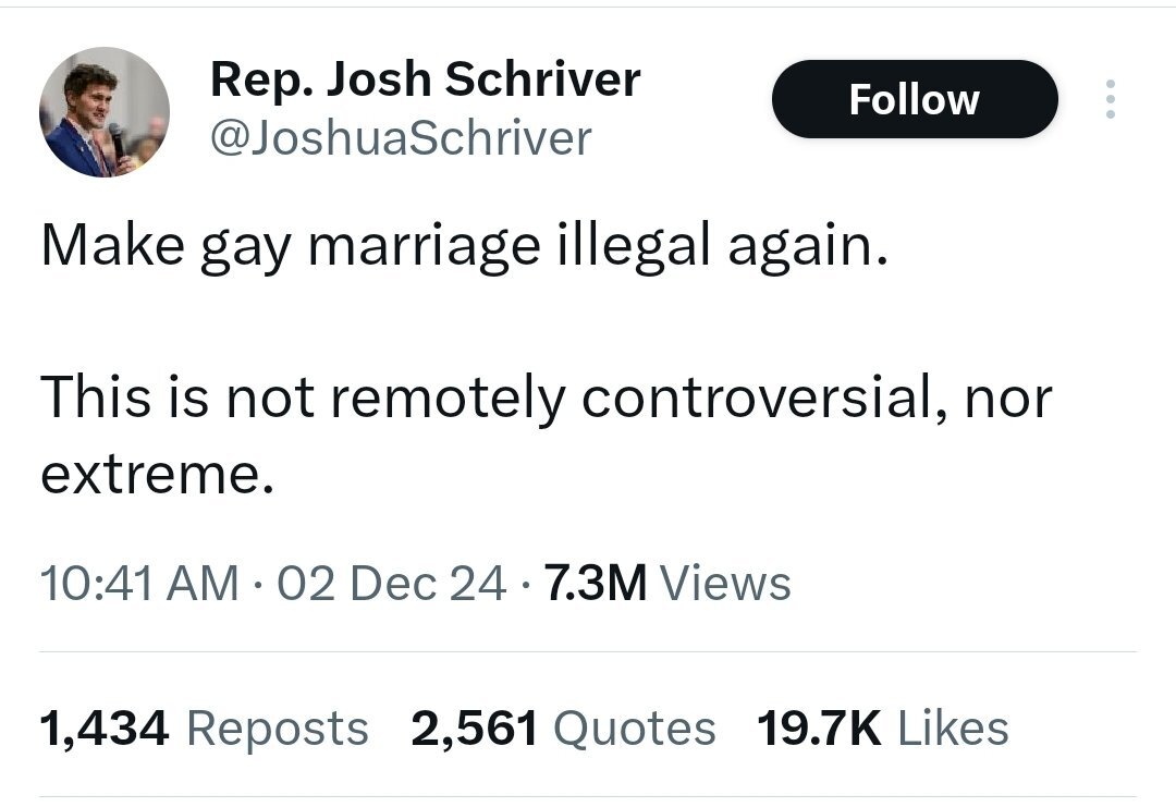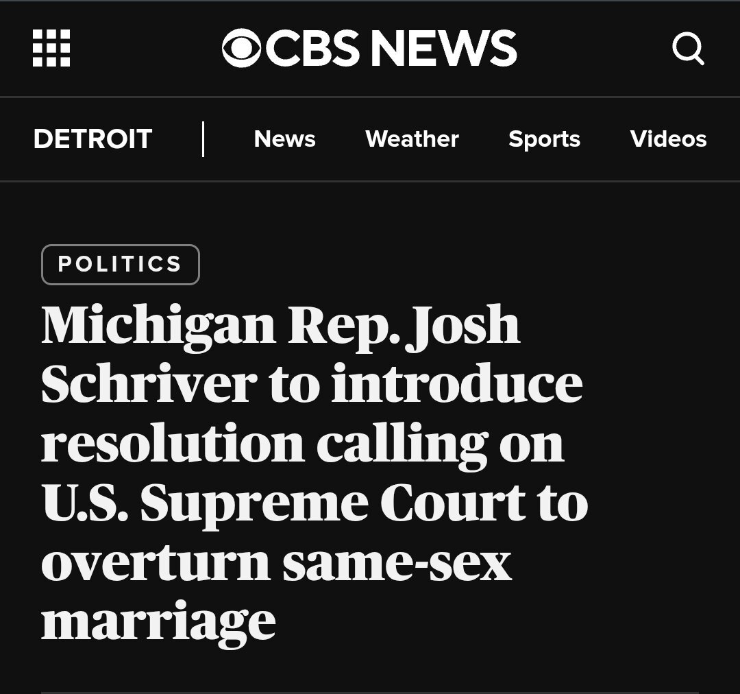 February 27Feb 27 1 hour ago, NOTW said: https://www.cbsnews.com/detroit/news/michigan-rep-josh-shriver-to-unveil-resolution-same-sex-marriage/