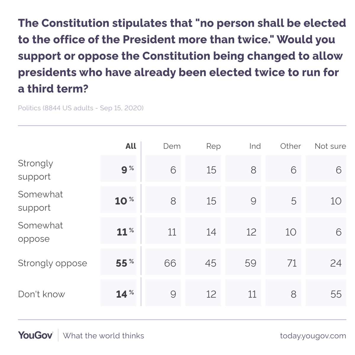 February 1, 20214 yr That same YouGov poll says 30% if Repubs we’re open to changing the rules to allow for a 3rd term. It also says only only 32% of Repubs thought Trump was serious with his 3rd term comments. Just one poll but doesn’t support the assertion that "Repubs want to do away with elections” or the assertion that a Repubs supported a 3rd and 4th term.