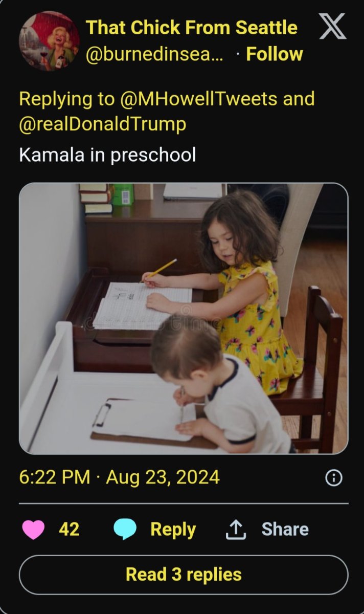 September 3, 20241 yr 1 hour ago, Toastrel said: Has anyone suggested hanging her yet? Oh, she's black, so my bigot supporters have got that covered. Cool. Toaster having a normal one, I see.