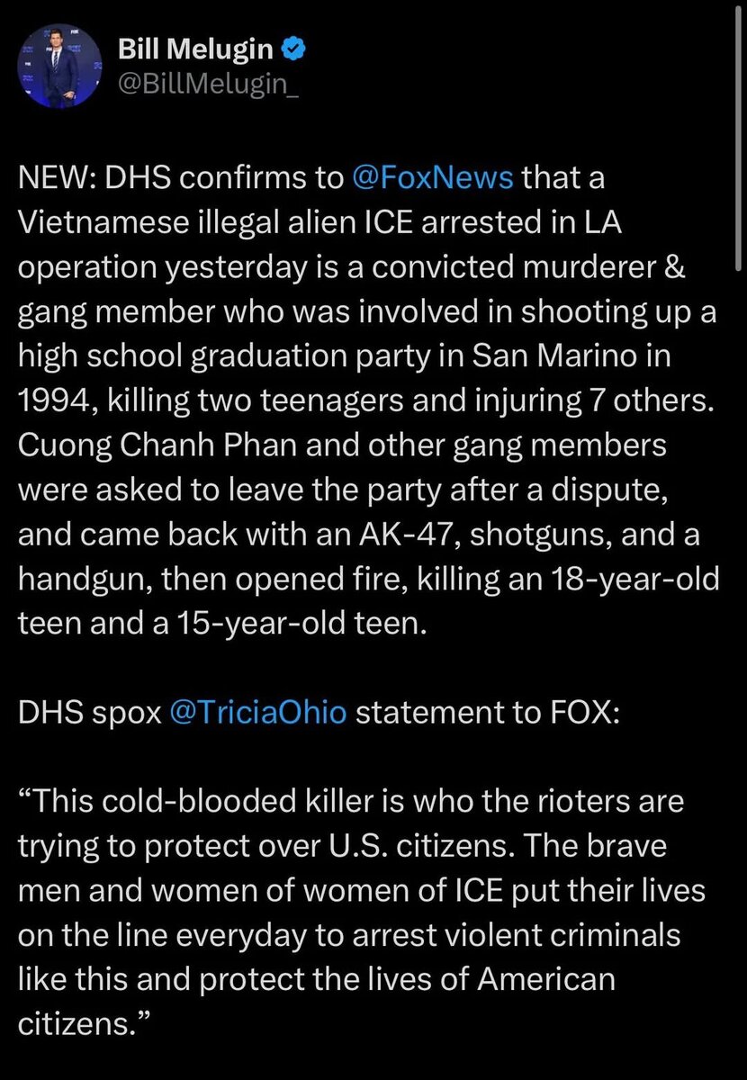 June 9Jun 9 On 6/7/2025 at 9:52 PM, DaEagles4Life said:Proving that Trump started the unrest. He is responsible for it.