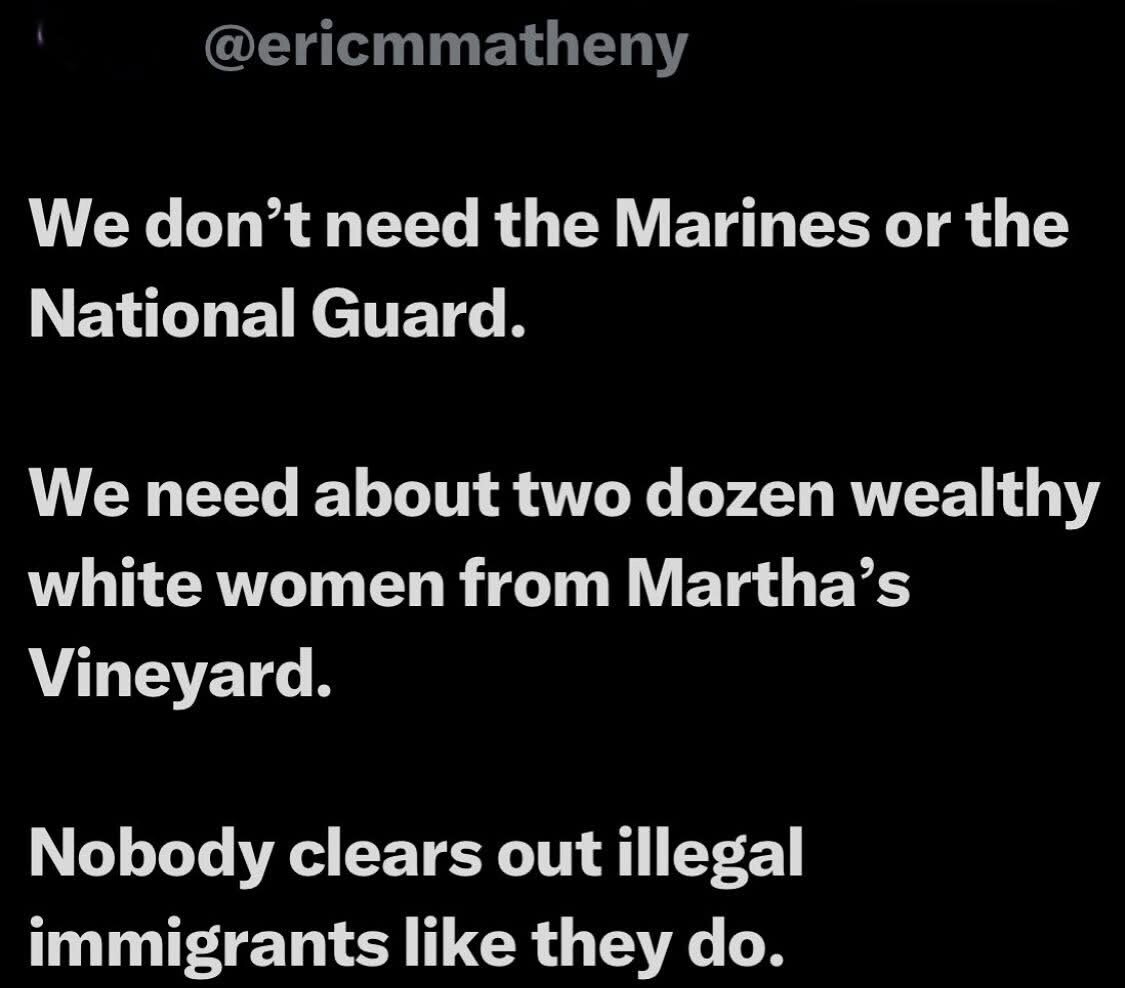 June 12Jun 12 "WASHINGTON – President Donald Trump said he plans to make changes to his administration's aggressive crackdown on illegal immigration to protect migrant farmers, hotel workers and others in the leisure industry who have been among those deported."https://www.usatoday.com/story/news/politics/2025/06/12/trump-immigration-migrant-farmers-hotel-workers-deported/84166061007/Hmm, so illegal immigration bad or not? C'mon MAGAts, how are you gonna explain away TACO again?