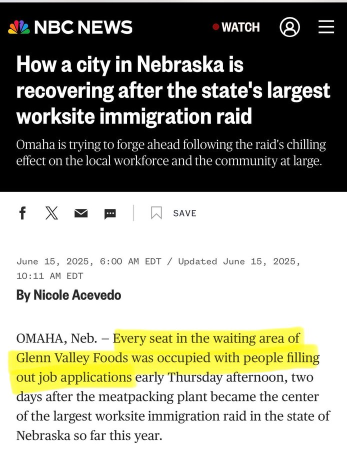 June 14Jun 14 TACO at it again...https://www.cbsnews.com/news/ice-directed-to-pause-immigration-arrests-at-farms-hotels-and-restaurants/The Trump administration has directed Immigration and Customs Enforcement to halt arrests at farms, restaurants and hotels amid concerns that the president's crackdown on illegal immigration is hurting key industries, two sources familiar with the abrupt policy change told CBS News.