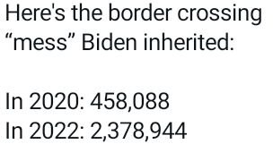 December 31, 20222 yr 11 hours ago, jsdarkstar said: Unlawful entry into the U.S. has been going on for many decades, under both Dem and Repub Presidents. This isn't a Dem or Repub problem. It's an American Problem. The problem with the discussion is that those who want a secure border are demanding that the Unlawful Entry number be brought to Zero. It's a totally unrealistic goal. There are more walls, more patrol officers, more technology and more money being spent to address the problem since 2001, yet the more that is thrown at defending the border the more people unlawfully enter. There are record cartel drug busts and arrests of human traffickers, but this does nothing for republicans because their demands are unrealistic. Oh, and what are the numbers of those actually entering through legal ports of entry vs. those who cross over somewhere else. I bet those numbers are all lumped together and used as a political tool. Partisan word salad from a brain damaged lib… yawn