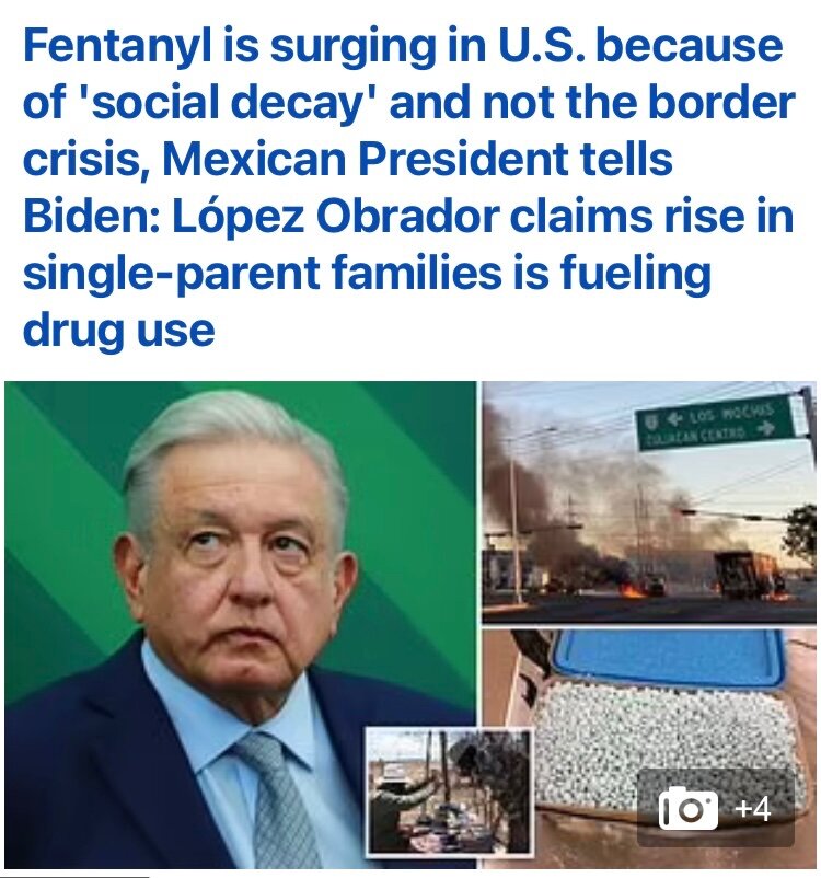 March 10, 20232 yr Maybe this needed to be said. Of course the part about them not producing fentanyl is incorrect. https://www.dailymail.co.uk/news/article-11844771/Mexican-president-Fentanyl-surging-U-S-social-decay.html