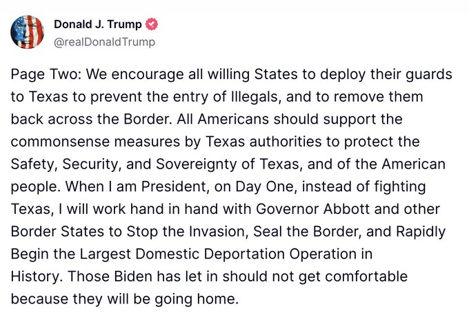 January 25, 20241 yr So while all the CVON 2024 election strategy experts are saying this is better to remain an election issue than to actually deal with the problem, Abbott has gone on record that Texas will not back down - and quite a few Republican governors are supporting that decision. If the governors of NY and Illinois were looking out for their constituents, they'd be on board with this too. But they apparently do not care about their constituents.
