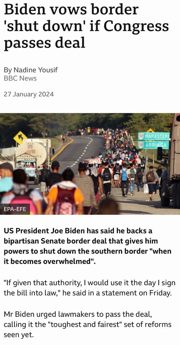 January 30, 20241 yr Here's your daily reminder Trump had majority in both houses for his first two years and didn't do anything about the border in that time.