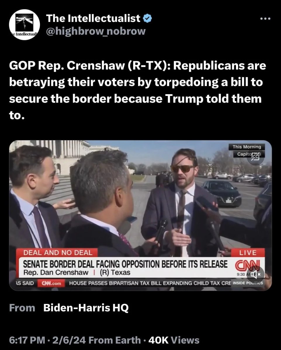 February 7, 20241 yr 39 minutes ago, Tweek said: Sad when even this cretin calls out his own party but yes, keep blaming Biden you rubes. 31 minutes ago, Toastrel said: That ishlib? A melon is a fruit. Just saying. Not everyone is as retarded as Crenshaw and liberals. The details of the "fix everything at the border bill" are public, morons.