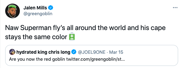 March 18, 20214 yr Well, I was not expecting that response. Gonna be interesting seeing Mills rock the green hair in New England. I know we like to comment on how easily he gets burned on double moves when he played at CB, but in all seriousness he outplayed his 7th round draft stock in a big way. Being the CB2 on a Super Bowl winning team is no small feat, and of course the play on Julio Jones in the Divisional round will always be remembered. Best of luck to the Green Goblin!