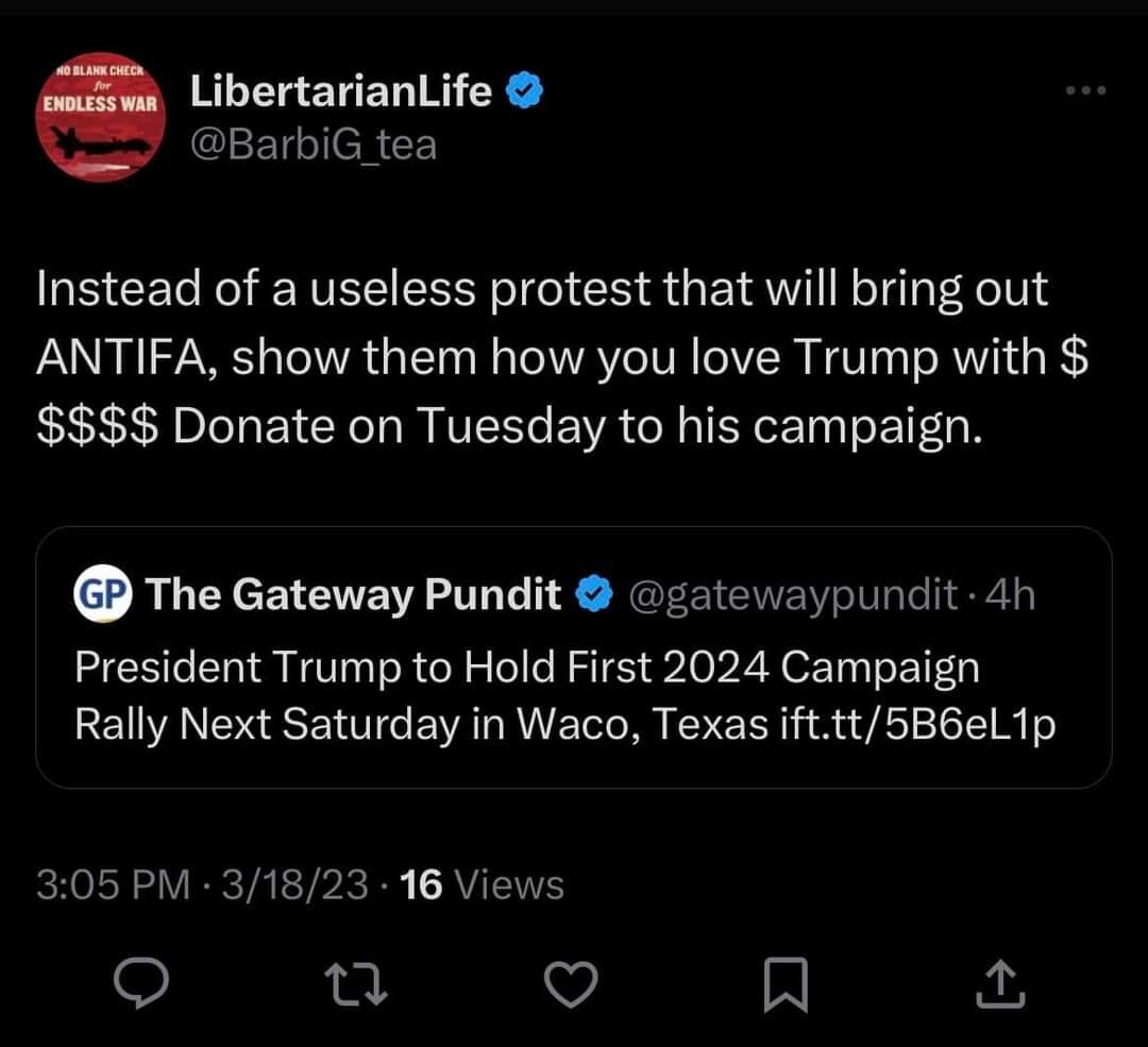 March 18, 20232 yr 1 hour ago, Lloyd said: Can't imagine him not running. He has the spotlight now. 2028 could be a whole different political landscape. 2028 will almost certainly be a more friendly landscape for him than 2024. I mean obviously anything can happen. Florida could break off and sink into the ocean (fingers crossed) or he could get caught in bed with a teenage boy, but absent a black swan event, his odds will improve by default when Trump’s out of the way.