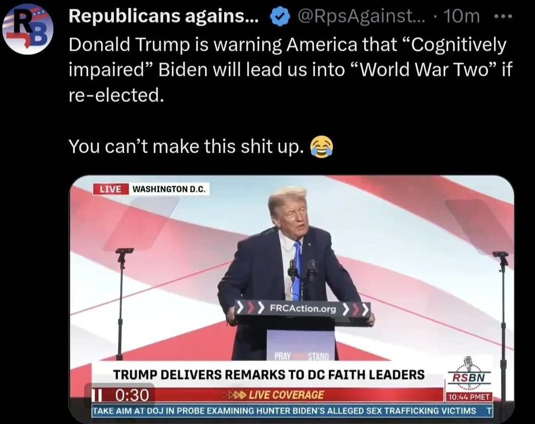 September 16, 20232 yr https://twitter.com/RonFilipkowski/status/1703009957908476103?s=20 Good ol' Dementia Donnie!