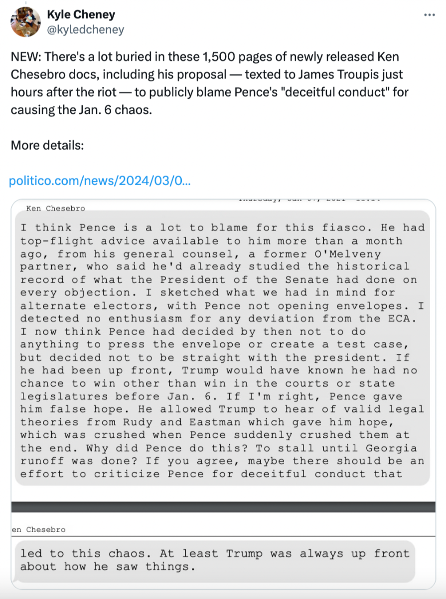 March 6, 20241 yr Trump Election Fraud Lawyer More Deranged Than Previously Thought "Delulu is the solulu.”—Kenneth Chesebro, probably https://newrepublic.com/post/179577/trump-lawyer-kenneth-chesebro-unhinged-solution-overturn-election It was all Pence's fault. No wonder they wanted to hang him. These people are nuts.