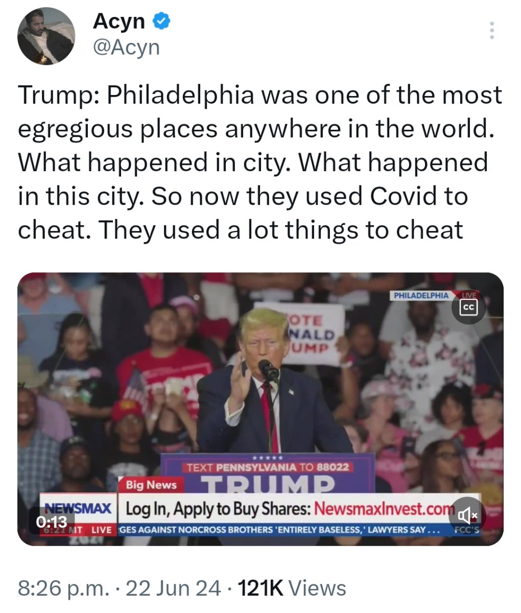 June 23, 20241 yr >“I said, ‘Dana, Dana [White, President of Ultimate Fighting Championship], I have an idea for you to make a lot of money. You’re gonna go and start a new migrant fight league. Migrants, only migrants,’” Trump said during his Philadelphia speech, echoing what he proposed during his D.C. speech earlier in the day. "And then at the end of the year, the champion migrant is going to fight your champion.” Wtf, at a "Christian" event as well Donald Trump Proposes Migrant ‘Fight League’ During Bonkers Rally Speech The presumptive GOP presidential nominee touted the dehumanizing idea at a Faith & Freedom Coalition event and at a Pennsylvania rally