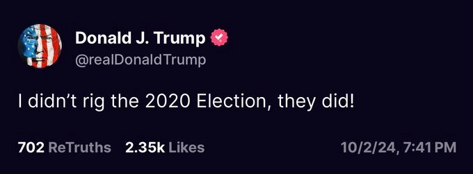 September 27, 20241 yr On 9/23/2024 at 3:22 PM, Toastrel said: Trump will keep it, thinking when he wins, he will make a lot of money. Yeah he won't let it go, he wants to pretend to be in the Space karen club, having his own social media platform to rule and lord over like a status symbol. You know like the NFL team he never got.