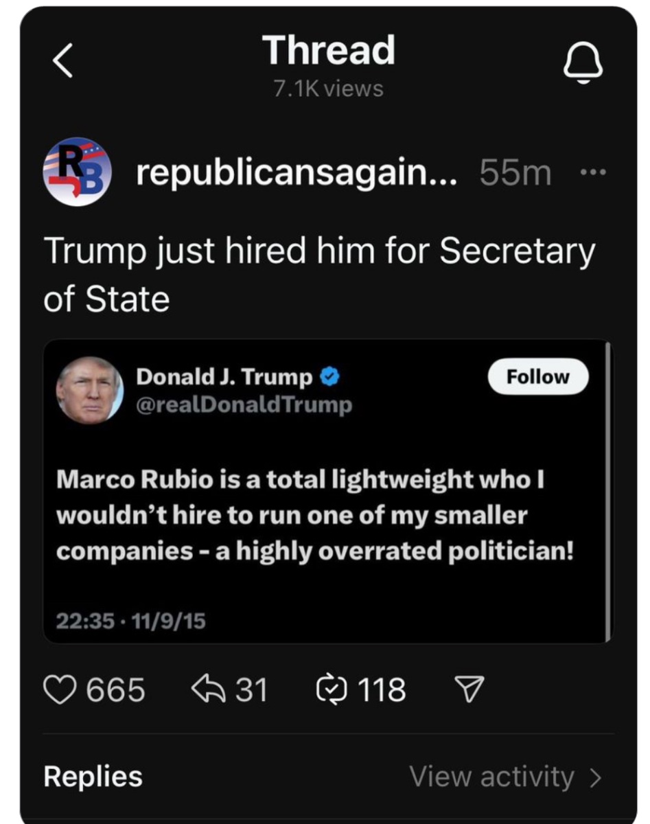 November 12, 20241 yr 30 minutes ago, Mike030270 said: Don't know where to put this since there's like 4 trump threads (mods need to start merging threads already ) maybe all your posts will help in the 2026 midterms keep fighting the good fight