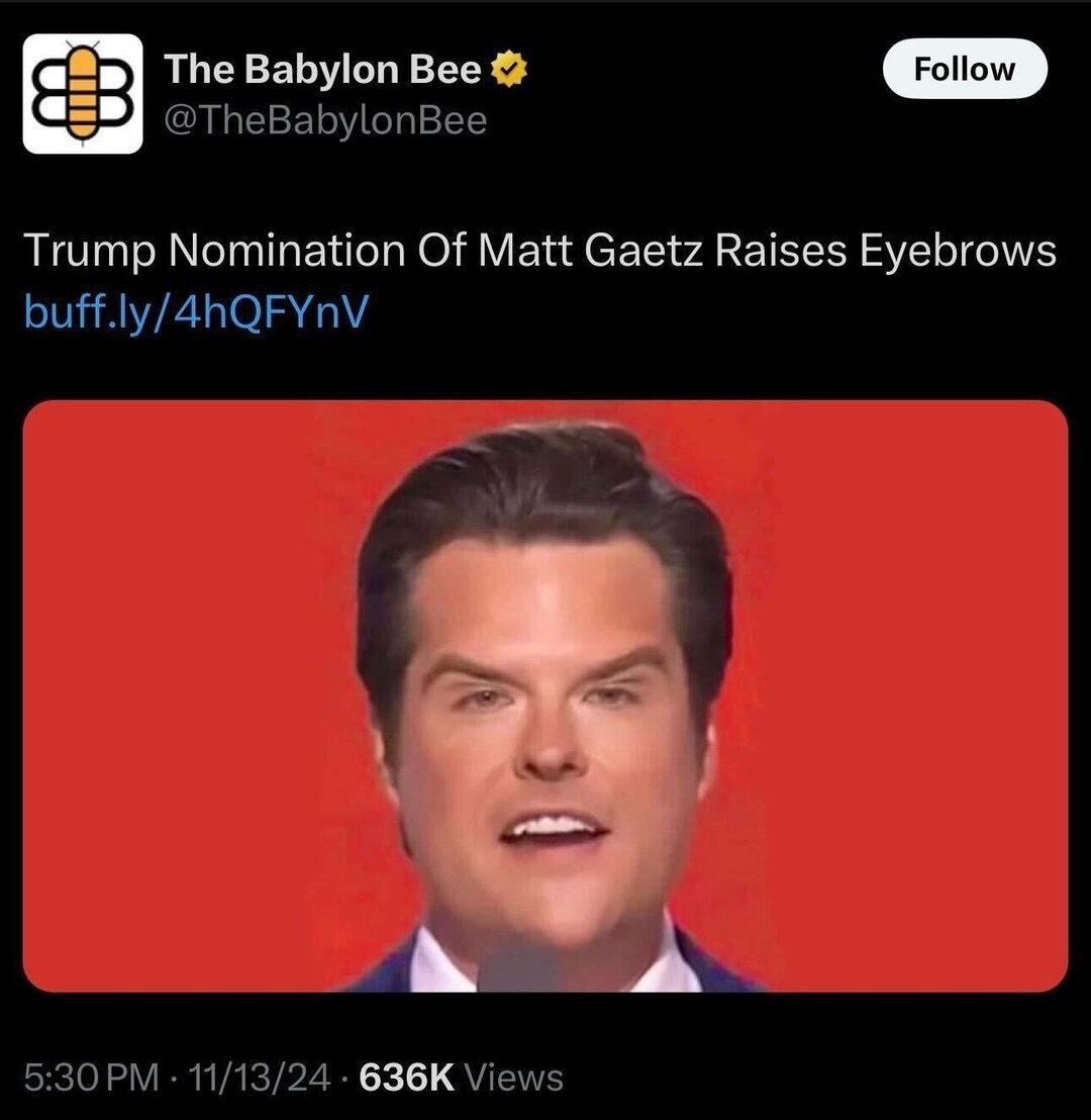 November 14, 20241 yr 1 minute ago, mr_hunt said: he is...but the repugs in the senate might just be gutless enough to confirm his appointment. we'll see. I am rooting for a rejection. Jordan needs to read the resignation into the record and get that moron out.