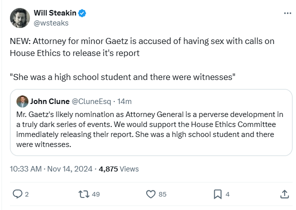November 20, 20241 yr Statutory Rape of children is a perfectly acceptable job qualification for Maga.