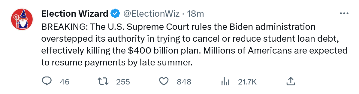 June 30, 20232 yr 1 minute ago, vikas83 said: I think the debt ceiling bill mandated that payments had to restart and couldn't be paused again. Doesn't mean Biden/Dems won't try something stupid. I think I saw that somewhere. No idea what he'll try next. If they get it done then that'll be a lot of votes going to them next year