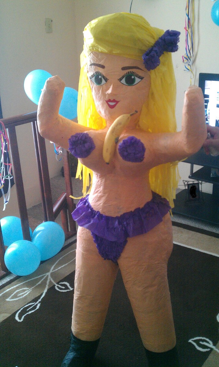 July 2, 20232 yr For my [redacted] birthday later this year in [redacted] (which is a milestone birthday in the decimal system only two years after a milestone birthday in the dozenal system! noice! ) I would like you all to chip in to buy me a giant piñata shaped like a beautiful biological female prostitute which is filled - trojan-horse-style - with a number of beautiful biological female prostitutes. Don't be cheap. I don't want some three-metre piñata with couple of midgets thrown in there (even though that actually sounds pretty cool). No, I want it to be like a couple of stories tall and hanging from a gantry in a big warehouse and one of those big mats under it they use for stuntmen jumping off buildings so the girls have a safe place to land when they fall out - and the mat can double as a place for me to have intercourse with all of them. And I don't want to beat the piñata with a giant stick because I don't want to risk bruising the girls... just attach a giant rope to a seam in the crotch so when I pull it, all the girls tumble out of the minge like it's giving birth. Also, please make sure all the prostitutes are named Candy - since they will briefly be inside a piñata. There's a small-scale example below - but I don't know why there's a banana. Thanks in advance.