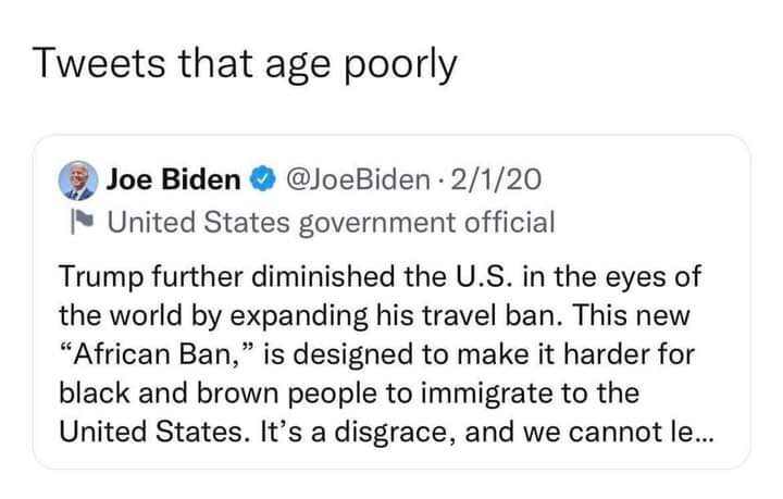 November 27, 20214 yr 10 minutes ago, lynched1 said: This is why nimwits like you are attracted to twatter - there’s literally no context here and you can screen snap 40 words or less to fit the garbage pile that spews out of your mouth. trumps ban was because hes a racist a-hole. https://www.nytimes.com/2020/01/31/us/politics/trump-travel-ban.html https://www.nbcnews.com/news/amp/ncna1142231 bidens is Covid related. Biden also just let in how many thousands of afghan refugees? You wanna call him racist? GTFOH