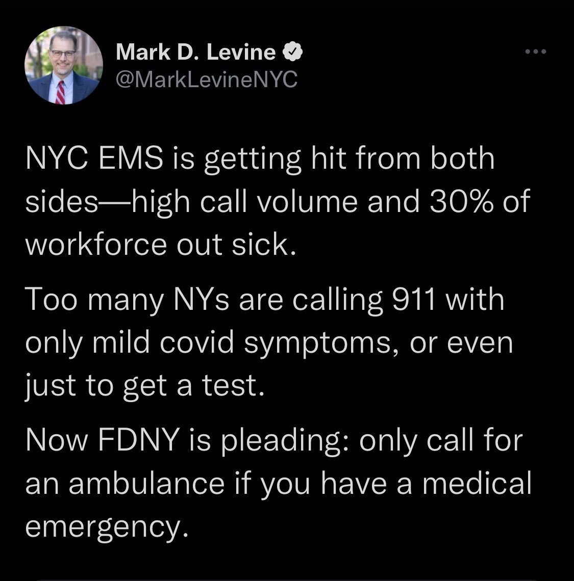 December 30, 20213 yr People panicking with minor cold symptoms calling 911 & trying to get COVID tests.