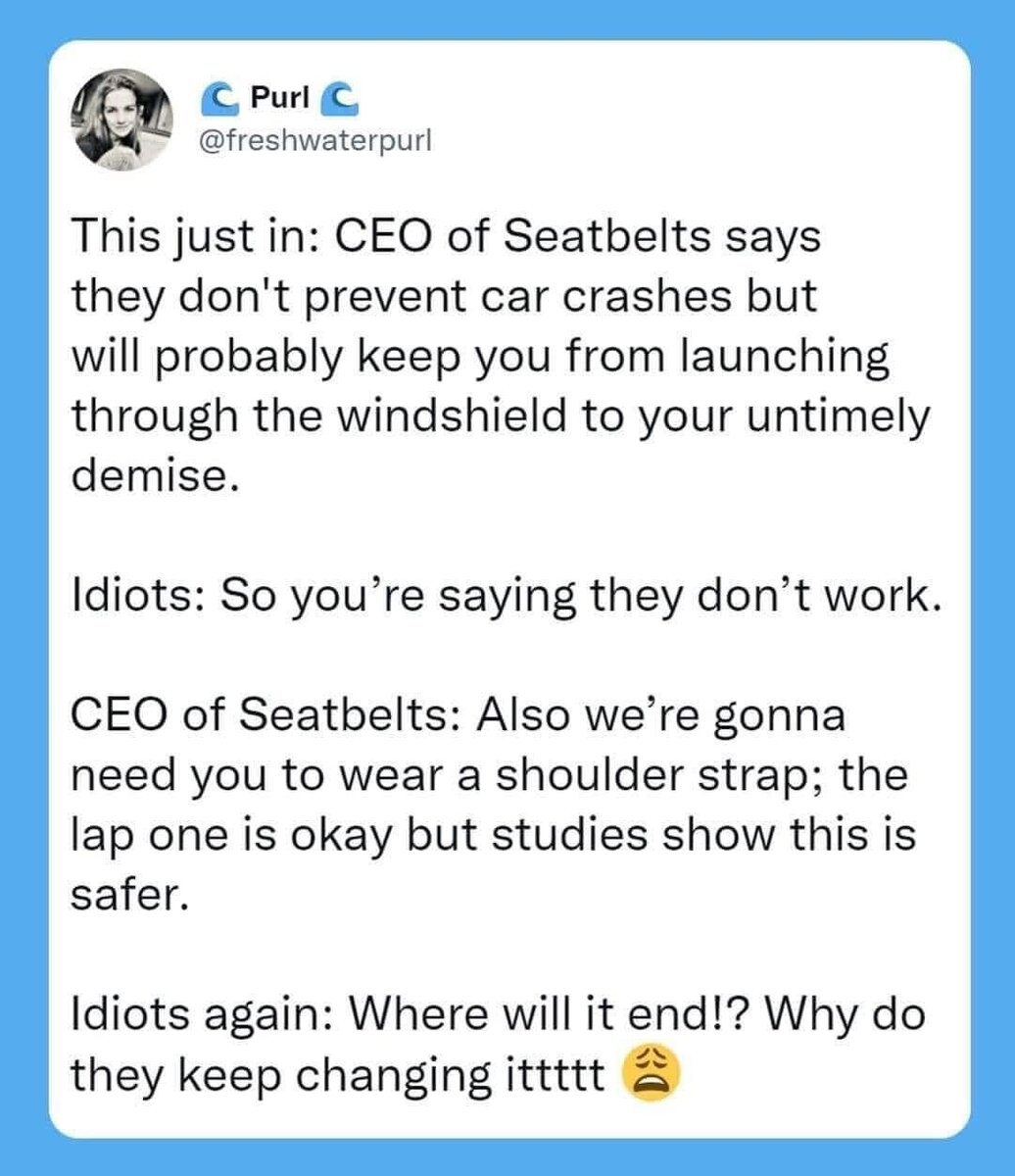 January 24, 20223 yr "We may need to boost again. We don't really know how long the antibodies last with mRNA vaccines. So we have no real idea on how long a booster shot will last, oh, but we unequivocally know there are no long term side effects from taking this every 4-5 months. You can trust us on that." That level of confidence is refreshing. lol lmao