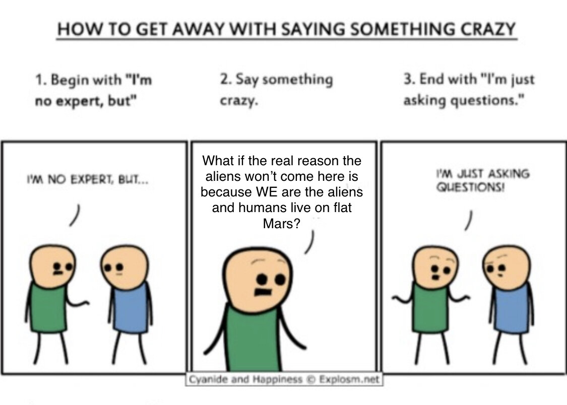 January 25, 20223 yr 2 minutes ago, Toty said: I had a cab driver once go into a long conspiracy that directly involved a particular place that he didn't know I worked at. Nothing he said bore any resemblance to anything happening there. When people are a few degrees removed from the reality on the ground, they eat up conspiracies with a spoon. @Abracadabra is simply someone that has absolutely no idea what he's talking about, and plays make-believe to fill in those giant gaps. They all do that. Because if they really "knew things", they wouldn't believe this wacky conspiracy BS in the first place. It's just a huge display of their lack of knowledge, with a teaspoon or two of wanting to feel special by believing things most people dont, added for flavor.