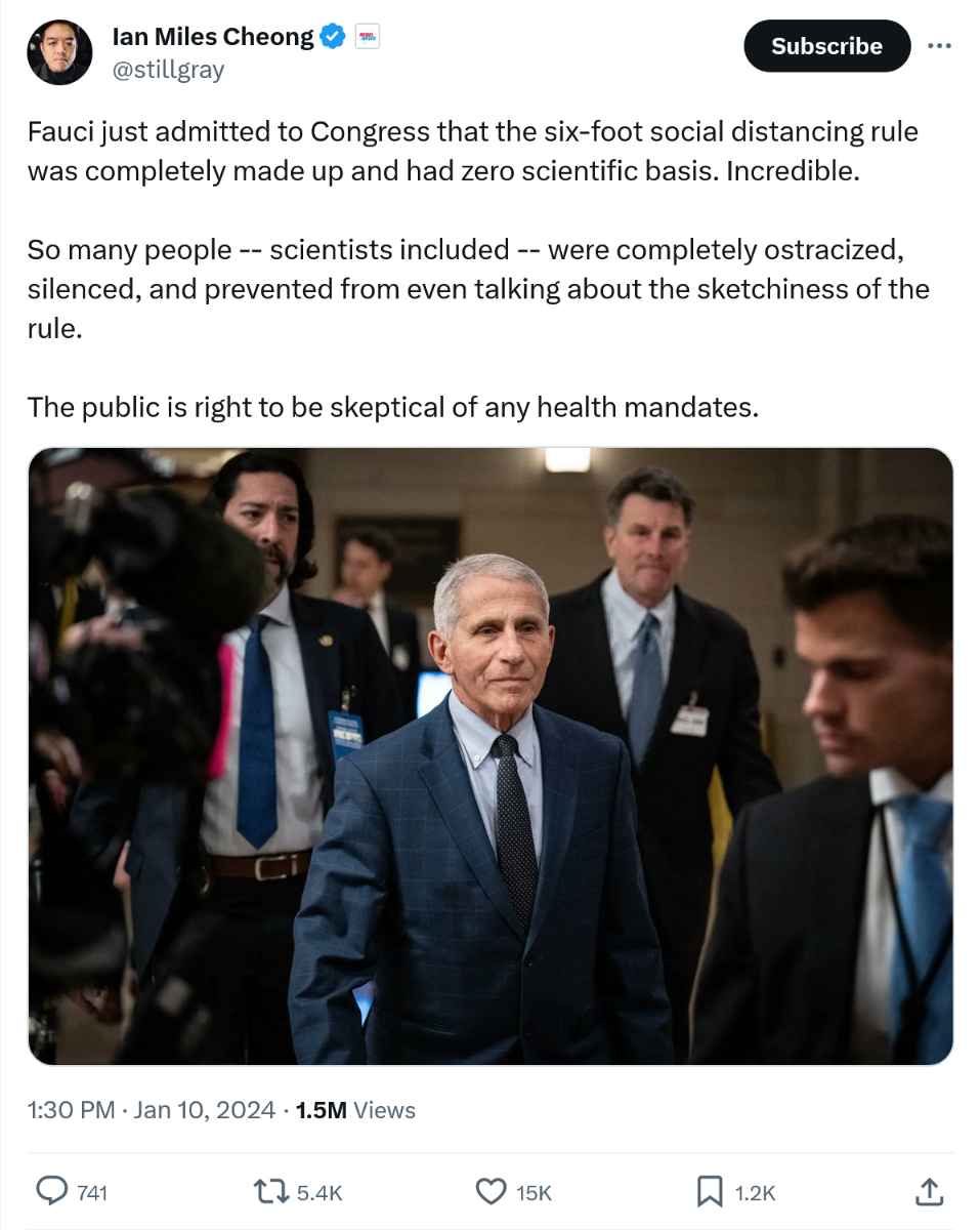 January 11, 20241 yr Procus: Haha Fauci admitted that early on in the pandemic they implemented control guidelines based on imperfect data on limiting the spread of existing pathogens. CHECK MATE LIBTARDS! Also Procus: