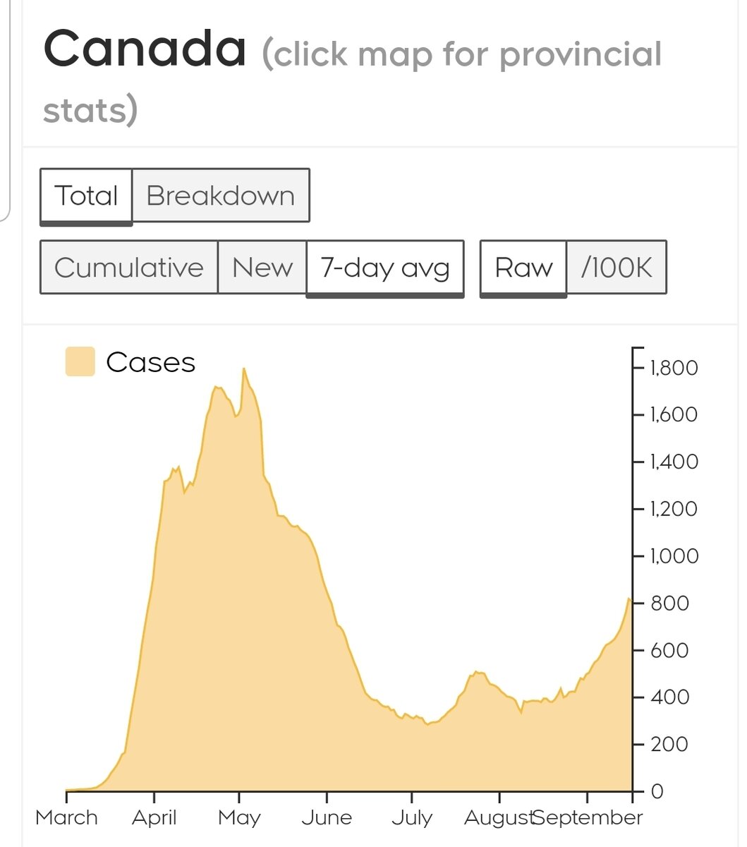 September 17, 20205 yr 2 hours ago, paco said: Europe may be spiking again A decent curve forming north of the border again... As of right now, deaths/ICU/vents are at their lowest point since March despite the recent upward swing in positive cases. I'm guessing we don't see a big increase even as cases rise, but it will be interesting to monitor. I think we're in for a moderate positive caseload and a slow burn with fairly low deaths/ICU/vents until a vaccine is ready.