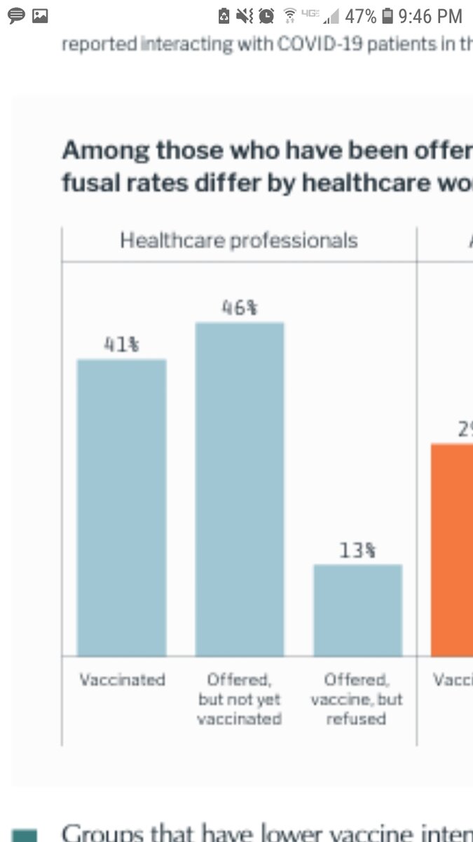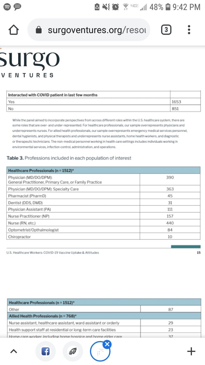 March 16, 20214 yr 2 minutes ago, DEagle7 said: And I specifically called it anecdotal, unlike you who passed on this survey like it means anything. To recap in this self-reported survey 46% of 1500 people, 800 of whom are doctors, haven't received their vaccine yet and some of them may not may not be delaying getting the vaccine. All while reporting specifically that the ones who know what they're talking about are much more likely to get it. Yeah...you really showed me! I never said "pharmacy" isn't really hard. I reviewing the safety and efficacy trials aren't that hard. "pharmacy" is also just one aspect to take into consideration when you talk about vaccines along with public health and given the nature of this vaccine biology/physiology. ie knowing how mRNA works. Per the CDC BMI charts the one I'm spewing it to now is about 5 lbs from being obese, so hopefully his local YMCA opens up soon! Personal. Responsibility. Here's Novavax CEO talking about the importance of safety re: AZN ish show. But but but.... the P1a/b and P2 were okay....