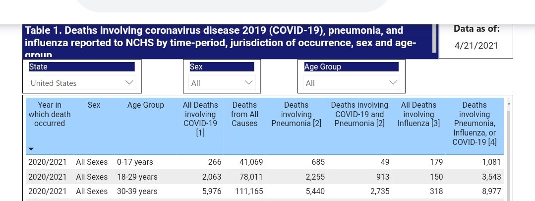 April 25, 20214 yr Let's look just at those under 18. 266 deaths with COVID. 41,069 from all deaths. So your risk of dying is roughly 0.05%, period. Your chance of dying due to COVID is roughly 0.0003%. Yeah, no. Take your vaccines and shove it. 99.95% chance of making it to 18 (and higher, honestly, because they're white). 99.9997% chance of dying due to something else, and you want me to inject experimental drugs into my kids????