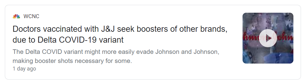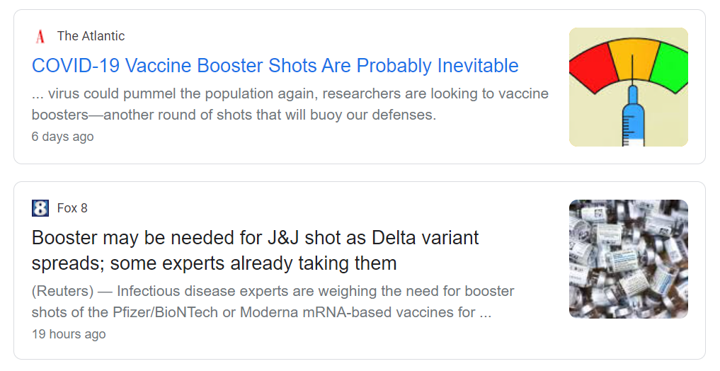 June 30, 20214 yr I mean, a booster shot has been discussed for a while. That isn't new. There is no direction to get a third shot (yet). The only thing in the near future that might be suggested is a a dose of an mRNA vaccine for people who got J&J due to Delta.