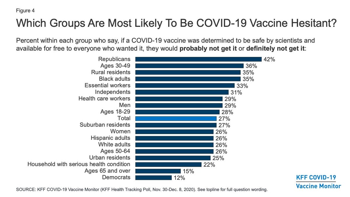 July 31, 20214 yr 3 minutes ago, Ace Nova said: Exactly my point. Unless you believe that 35% of black adults are Trump supporters. Or that everyone on that list (other than Republicans) are all Trump supporters. I don’t believe in absolutes, but there’s certainly more Trump supporters who are against getting the vaccine than the folks on the left. But, no doubt there’s also a lot of trepidation among the black community to getting the vaccine.