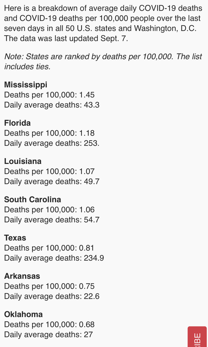 September 7, 20214 yr Just now, The Norseman said: So you think it's only unvaccinated Trump voters that are dying? Pretty much. Look at which states have the highest death rates.