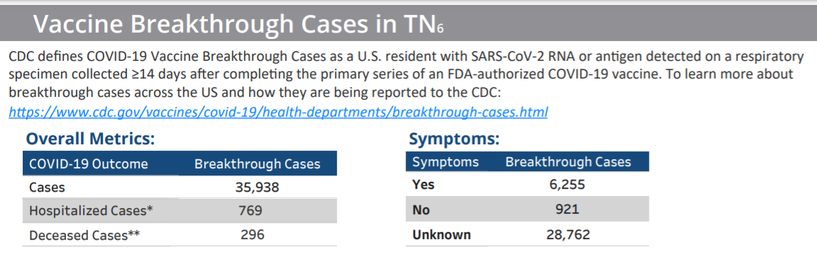 September 21, 20214 yr Big numbers on breakthrough cases out of Tennessee as well: Keep in mind this number is likely vastly underreported.