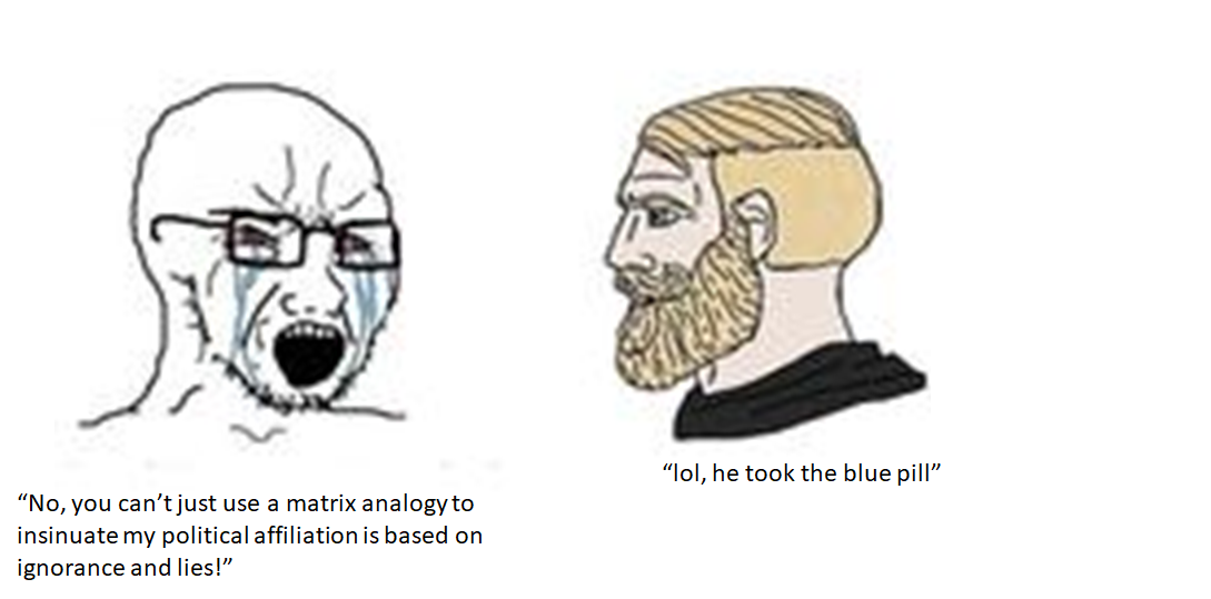 September 28, 20214 yr 2 minutes ago, Kz! said: Someone is butthurt they're taking the blue pill. Of course you're all in on the red pill/blue pill metaphor