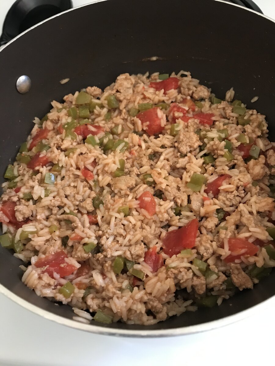 September 20, 20205 yr End of the garden. This tastes like stuffed peppers but is done in one pot. I substituted ground turkey and chicken broth but of course can do ground beef and beef broth.