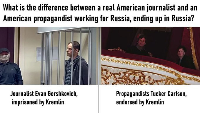 February 6, 20241 yr 4 minutes ago, Toastrel said: Yep. And Gershkovich isn't the only one. Quote Russia is also a leading jailer of journalists, with at least 22 behind bars for their work as of late 2023, according to the Committee to Protect Journalists. Moscow has also issued arrest warrants or tried in absentia prominent Russian journalists who fled into exile at the start of the war. Among the journalists imprisoned currently in Russia are two Americans: The Wall Street Journal reporter Evan Gershkovich, detained since March, and Radio Free Europe/Radio Liberty editor Alsu Kurmasheva, held in custody since October.