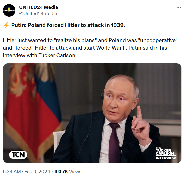 February 9, 20241 yr Hitler just wanted to realize his plans, and Poland objected. 'FFS - keep defending Tucker & Vlad, you pathetic worms.