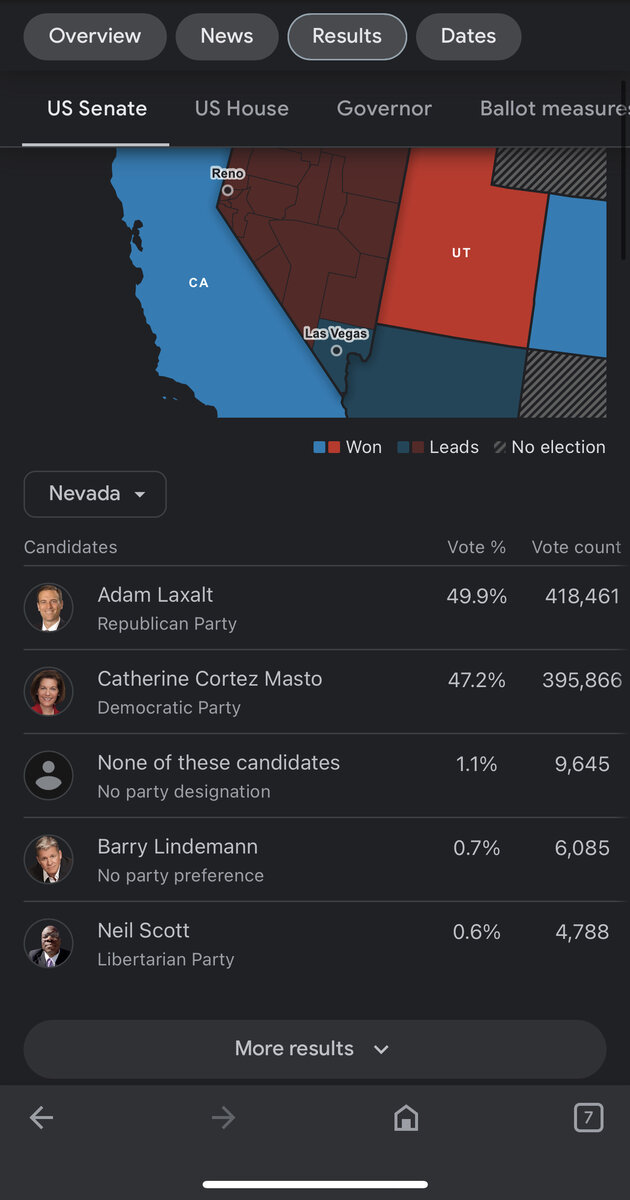 November 9, 20223 yr 2 minutes ago, DiPros said: Did you ever think you would see a loon like Walker as a Senator?? Please dear Jesus not in my lifetime. Both of those candidates are scummy people. I’m happy to see my favorite candidate "None of the Above” breaking the 1% mark in NV: How crappy do Barry and Neil feel today knowing the people of NV would rather have no representation than either of them?