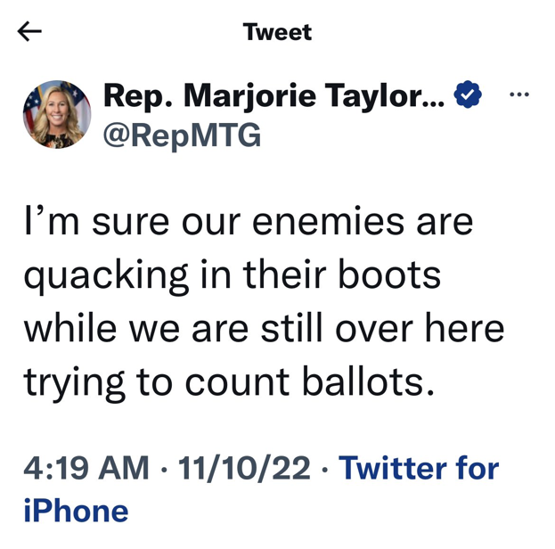 November 10, 20223 yr 9 minutes ago, vikas83 said: It's an hour long interview. I haven't watched to confirm. https://rumble.com/v1t9zr4--live-louder-with-crowder.html I found it 37:45 and that Tweet is full of crap. She said DeSantis announced a big victory She feels the Democrats are slow rolling the counting so as to not give her and Trump GOP a chance Basically, she feels they are delaying it until the weekend when no one will be paying attention, but she did not attack DeSantis or say he was in any way part of a conspiracy. She isn't my favorite person but that Tweet was just trying to stir up crap.