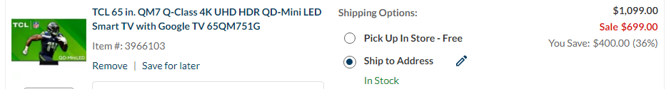 February 15Feb 15 2 hours ago, Bill said: Heh that’s a good call. When I got my TCL it was a lot cheaper than comparable models. Not sure if that’s still the case, but when I got it I was considerably happy with the value. I'm getting it at the AAFES (Army and Air Force Exchange), so no taxes and free shipping. The one I'm replacing, which the Credit Card insurance company refunded, was $850.