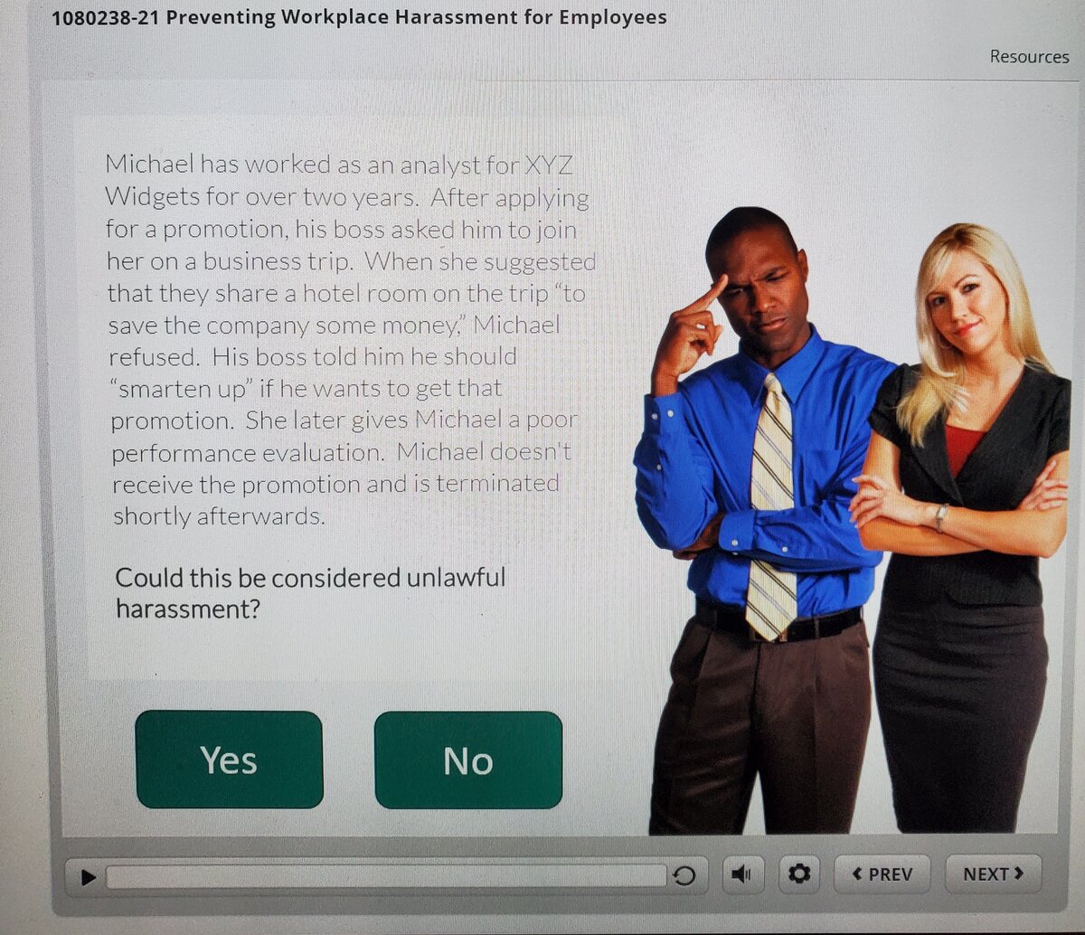 July 19, 20214 yr 7 minutes ago, NOTW said: that was a question on the training as well, that men can sexually harass other men, women can harass men or women too. The scenarios they give are so silly. One was an openly gay employee comes to work to find offensive post-it notes on his desk like calling him "twinkle toes." Another was is it ok for employees to draw cartoons depicting all Muslims as suicide bombers and put them in the break room. WTF Some of my big corporate jobs had these on HR videos with live actors. This one had a guy checking out a girls arse and saying something like "I'd tap that" They make them the most blatantly over the top scenarios that nobody could possibly get wrong. Why can't they create true gray area scenarios for those things?