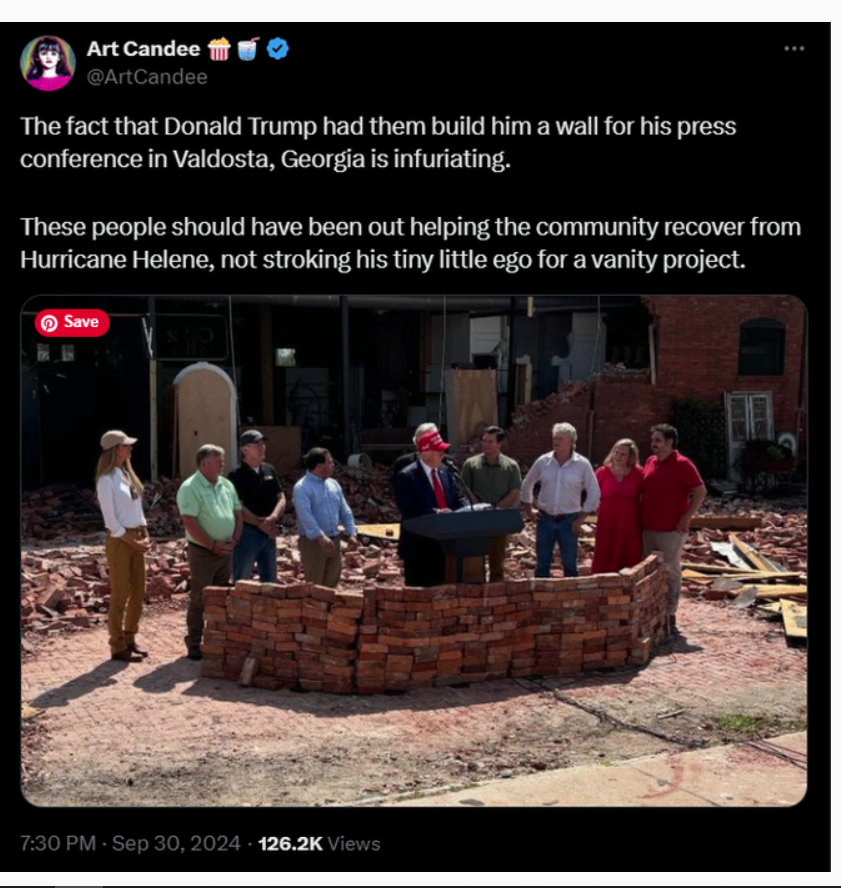 October 4, 20241 yr 6 minutes ago, Procus said: Trump has ZERO to do with this Zero. Really? He inserted himself into it and made it Political casting blame on Biden. I'd hardly call that zero.