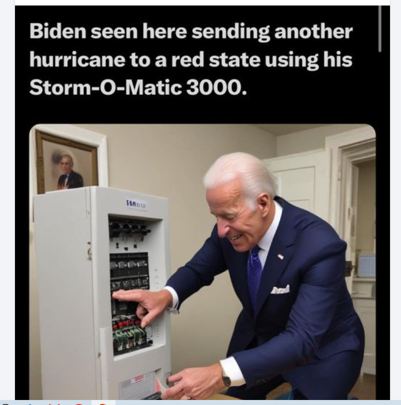 October 10, 20241 yr 1 hour ago, jsdarkstar said: I wonder if I could get the MAGAts on Twitter to believe that this is how the weather machine works.