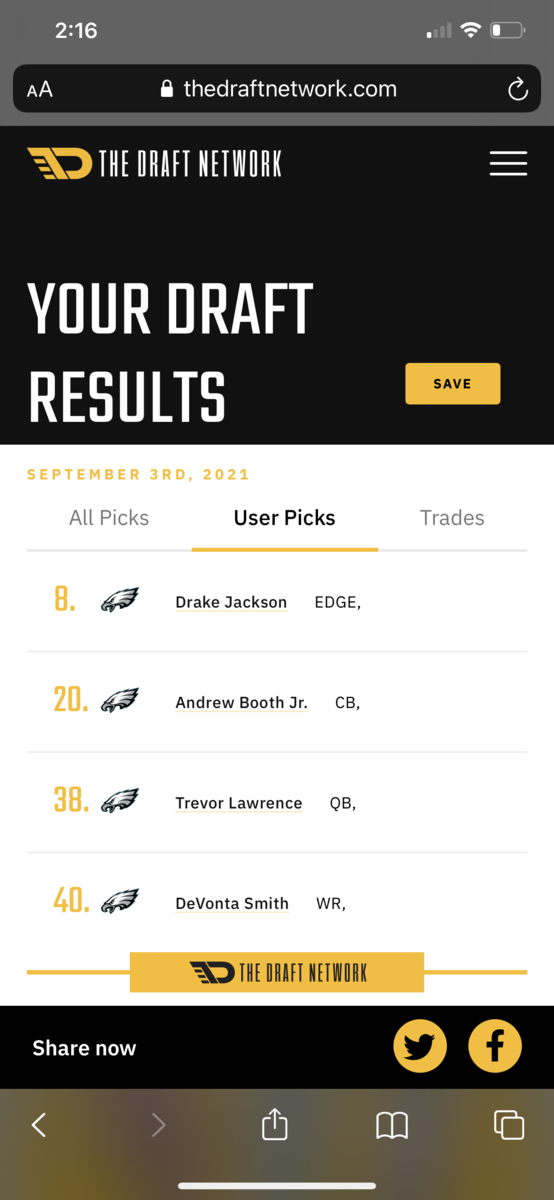 September 5, 20214 yr You can do 2022 nfl mock drafts now on TDN’s simulator. Found a little bug. If you use the predictive board it’s based on 2022 players, but if you use player rankings it’s still 2021 players. Think I found us some good value in the second…