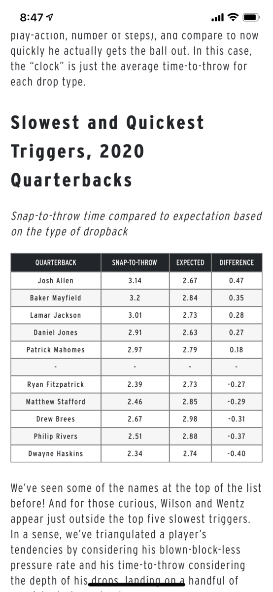September 23, 20214 yr 7 minutes ago, MillerTime said: You’re being unrealistic with the Time to throw. 2.5 was more of a guideline. Basically get the ball out quickly to the correct read, and not throw it too late, take sacks etc....