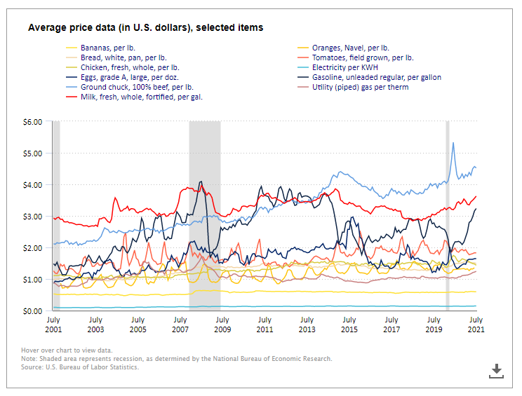 September 10, 20214 yr Author 16 minutes ago, vikas83 said: OK. Let's try and teach you something. 1. The reason CPI is high on a year-over-year basis is because we are lapping the deflation from 2020 caused by the pandemic. See chart below. So as you can see, on a 2 year basis (i.e. comparing to 2019), the growth isn't that abnormal. 2. This can be sign by looking at average prices, which are basically up with consistent norms since 2019 3. Newsflash -- nothing done by an administration in 8 months can spur massive inflation. Inflation expectations, as evidenced by treasury rates, remain inline with historical norms RINF, which is an ETF that measures inflation expectations as evidenced by 30 year TIPS 30 year yield Conclusion -- stop talking about things you clearly don't understand. You can pose all the charts you like my friend, but when you have incompetent people in charge, bad things happen. The previous administration, with all of its warts, kept the supply lines open and would have mitigated this damage to a greater degree on the ground level.