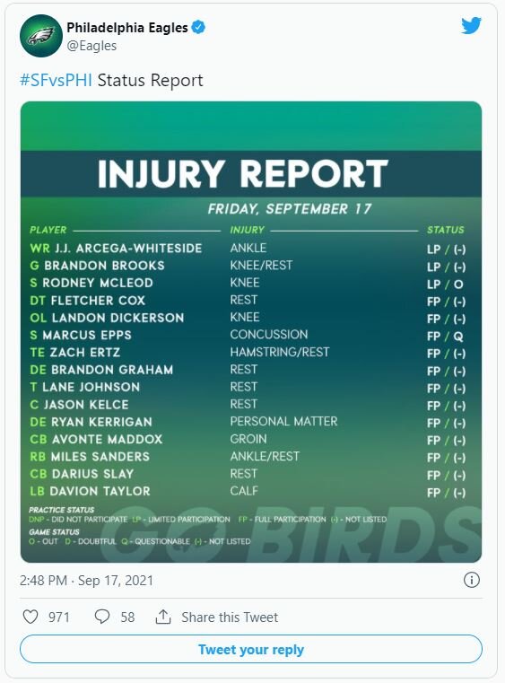 Posted September 18, 20214 yr ‘Worth Our Time’: Nick Sirianni Switches Up Eagles Practice Routine By Mike Greger Updated Sep 17, 2021 at 8:27pm Getty: Eagles head coach Nick Sirianni has been bringing that "dog mentality" to the Philly locker room. Is Nick Sirianni making sweeping changes to the way the Philadelphia Eagles conduct business? No, not really. But the minor tweaks the first-year head coach has made so far have been impactful. He’s pushed all the right buttons. On Friday, Sirianni caused a stir when he took the Eagles across the street to practice at Lincoln Financial Field. It’s an unusual occurrence for the team to get reps on their home turf outside of training camp, but Sirianni had a solid reasoning for the unorthodox move. He wanted the guys to experience the nuances of the stadium, things like how the wind gusts affect the kicker and quarterback, and how the receivers and defensive backs see the ball. Smart. "Just the surroundings of being there getting ready,” Sirianni said. "Just practicing, executing plays in that stadium. I do really believe – is it a huge difference? Not a huge difference. Even if it’s that much, it’s worth our time to go over there.” The one-time wide receivers coach credited his time in Kansas City for the idea. Arrowhead Stadium was close to the practice facility, so sometimes Todd Haley would put them under the bright lights. "The other thing is that’s our home field,” Sirianni said. "If you get eight games or ten games at that stadium, imagine how much more it feels like your home than when you’re 20 games. So put a lot of thought into that.” Rodney McLeod Out, Three Players Limited Rodney McLeod has been ruled out for Week 2 as he continues to rehab from ACL surgery. The Eagles kept him off injured reserve in the hope he’d be ready for the season opener. He wasn’t. Making matters worse, backup strong safety Marcus Epps suffered a concussion last week and still hasn’t been cleared to return. Sirianni expects a final decision on Epps on Saturday. If he can’t go, K’Von Wallace will likely draw the start. "I feel good about our secondary. They played a good game,” Sirianni said. "They’ve been practicing well in the past. They’ve had a good week of practice this week, so I’m really confident in them.” Receiver J.J. Arcega-Whiteside (ankle) and right guard Brandon Brooks (knee) were also limited at Friday’s practice. Neither player was ruled out for Sunday. And tight end Zach Ertz (hamstring) was a full participant. NFL Debut for Rookie Landon Dickerson? Second-round pick Landon Dickerson (knee) was another full participant at practice. The team might need him for offensive line depth after placing swing tackle Le’Raven Clark on injured reserve. Guard/tackle Kayode Awosika was protected and center Harry Crider was added to the practice squad. Dickerson – the Rimington Trophy winner at Alabama – was drafted to be the future center for the Eagles assuming Jason Kelce retires. He had been recovering from season-ending ACL surgery and just came off the PUP list on Aug. 30. The Eagles plan to cross-train him at other positions and there’s a chance he could make his NFL debut on Sunday in a reserve role. Dickerson could see snaps on special teams, too. "We’ll hold that close to us, just for right now,” Sirianni said of Dickerson’s status. https://heavy.com/sports/philadelphia-eagles/nick-sirianni-practice-linc/?fbclid=IwAR2LSh1v1p_QB5_T___WPSZ5TrMYNZZRje3YWnwbD1PSsMw0tF3EGnpNrrQ